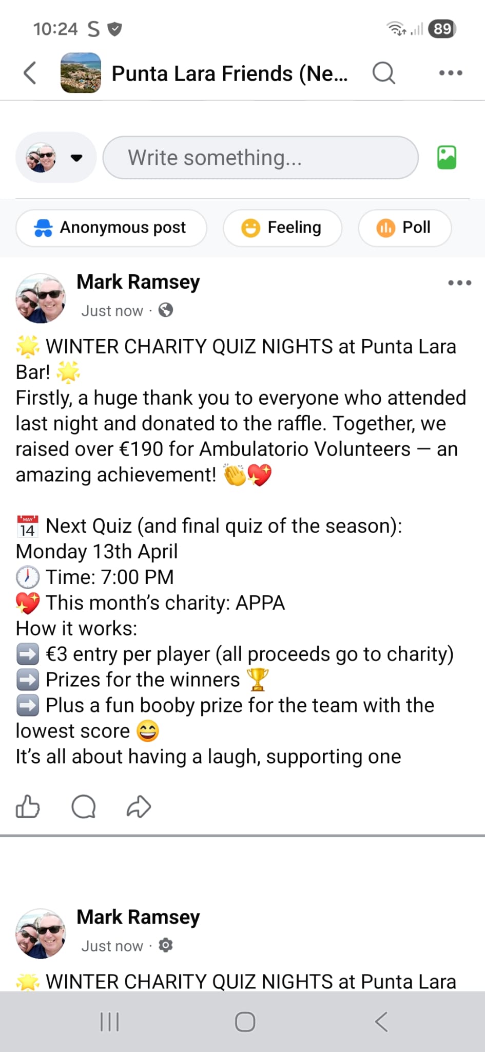 We start the year with two most generous donations : 500€ from THE PHOENIX CLUB in Torre Del Mar and in March the PUNTA LARA BAR has organised a "quiz nite" where they have raised 190€ for our association. We thank all those who have participated in the raising of these donations.